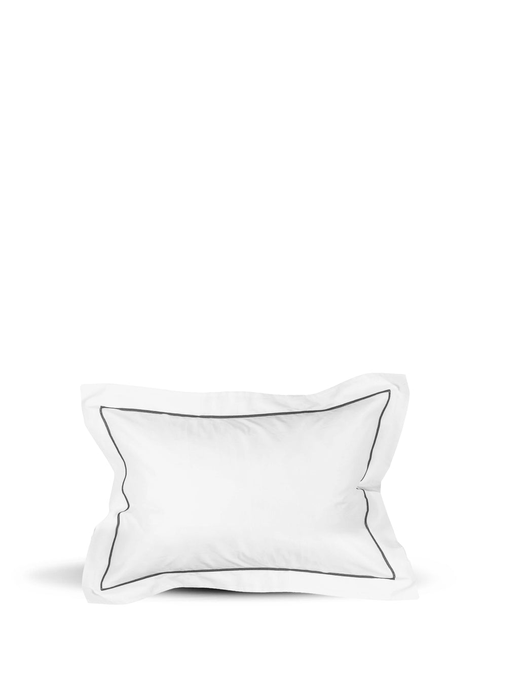 Låt hotellkänslan flytta hem. Carl örngott är krispigt sköna. Carl är tillverkad i mjuk, 100% ekologisk bomull och bidrar definitivt till en god natts sömn. Designen är stilren och klassisk med en vit bas som pryds av svarta stygn, en sorts brodyr som kallas ”baratta”. Finns i fler färger. Trådtäthet 144.