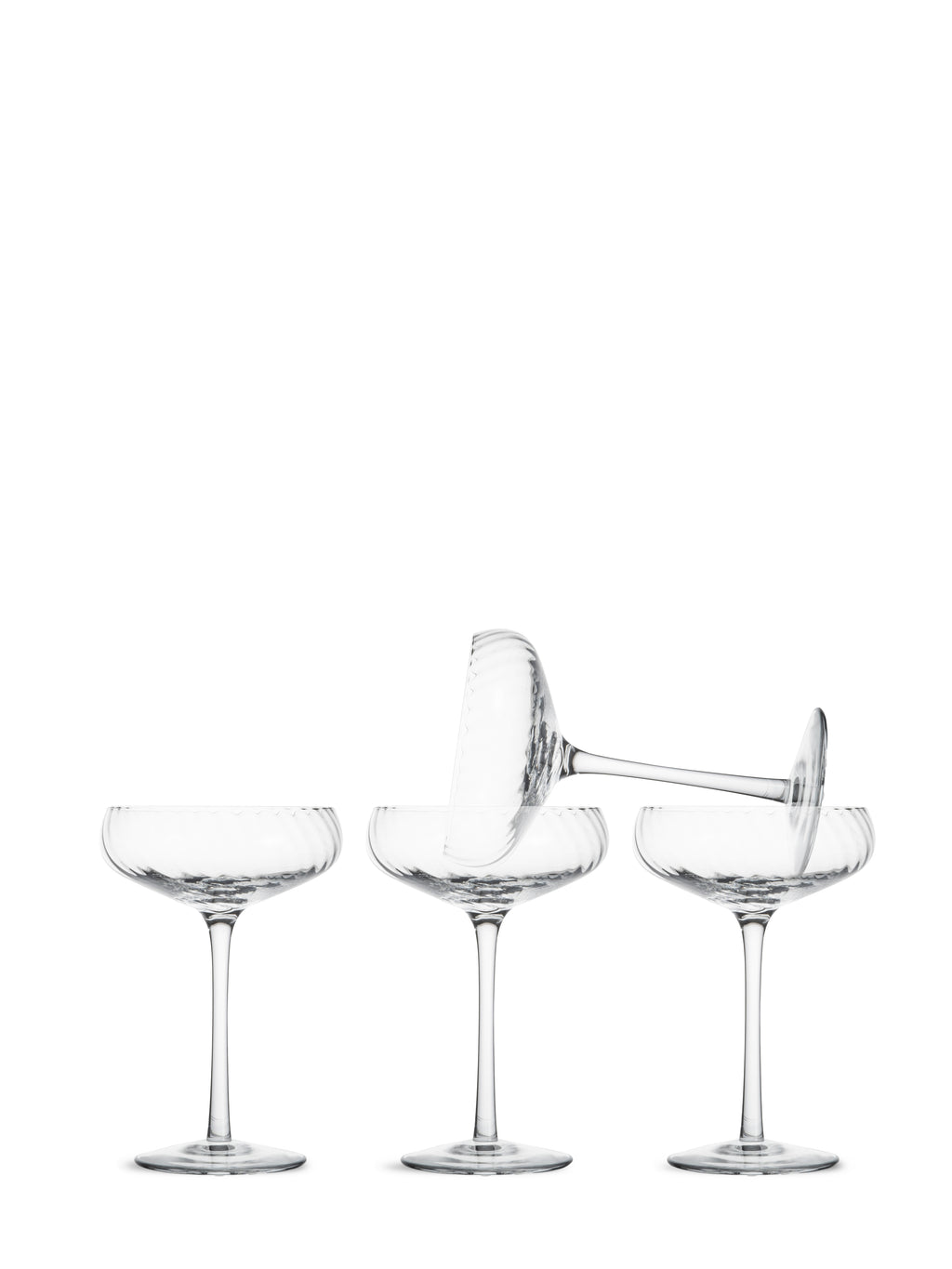 Opacity Champagnekupa 4-pack är en perfekt present. Glaset är designad för den perfekta upplevelsen - på bordet, i handen och när du dricker. Det är en tunn och skir champagnekupa med ett vackert snurrat glasmönster i klar glas. Används med fördel även för desserten eller morgonjuicen för en festligare känsla. En design som har perfekt kontrast mellan lyx och kaxighet. Design Byon Studio. Levereras i 4-pack i Byon box.