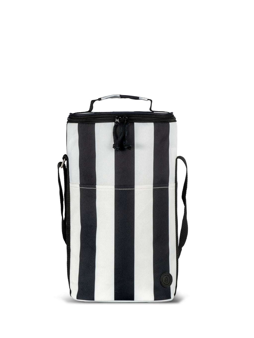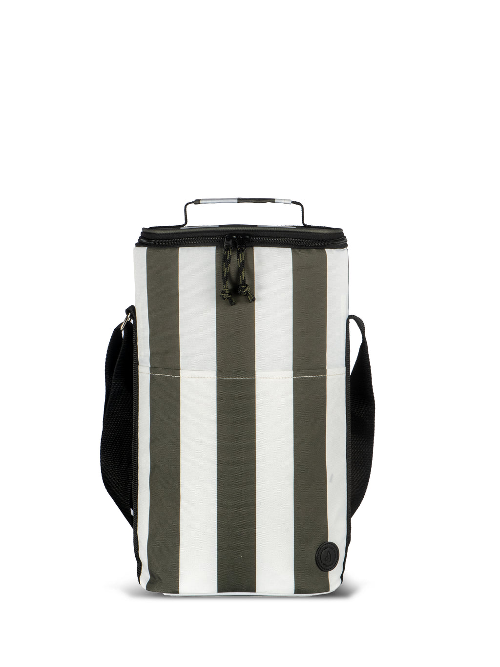 En praktisk och kompakt kylväska med smakfulla ränder, perfekt för utflykter året runt, både sommar- och vinteraktiviteter. Denna höga modell passar perfekt för exempelvis två vinflaskor eller 1,5 liters PET-flaskor. Kylväskan har en liten ficka på framsidan och yttertyget är tillverkat av återvunna PET-flaskor. Vattentäta sömmar på insidan. Finns i flera färger.