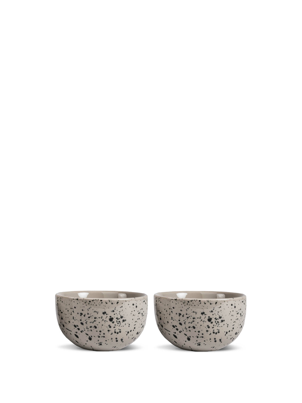 En mindre skål för snacks. Kulören går i en beige/grå ton med ett fint stänkmönster i svart. Denna skål har bara mönster på utsidan för att skapa harmoni och karaktär mellan seriens olika delar. Tillverkad i stengods. Är även fin att kombinera med Coffee & More serien. Säljs i 2-pack. Ditte är handgjord. Färg och yta kan därför variera från en produkt till en annan. Varje produkt är unik i sitt slag.