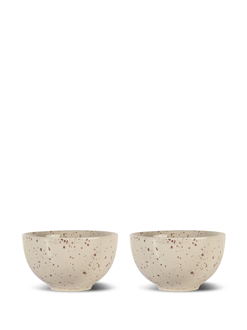 En mellan skål för snacks eller frukostflingor. Kulören går i en beige ton med ett fint stänkmönster i svagt vinrött. Serien är också fin att matcha med Coffee & More. Säljs i 2-pack. Ditte är handgjord. Färg och yta kan därför variera från en produkt till en annan. Varje produkt är unik i sitt slag. Tillverkad i stengods. Design Studio Sagaform. Levereras i en klassisk presentbox. Tål maskindisk och är livsmedelssäker.