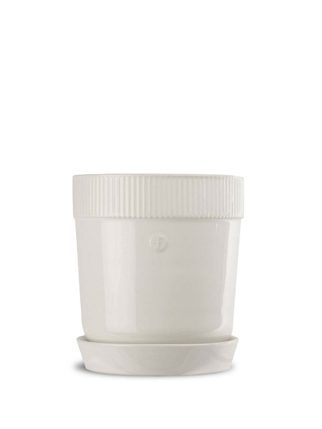 Elise kruka med fat har alla rätt. Den kombinerar designen av färg, form och detaljer med praktiska inslag som dräneringshål och ett fat som går högre upp. Elisa kruka har en mjukt rundad form med enkla raka snitt och är tillverkad i klassiskt stengods. Krukan är dekorerad med ett emblem och Sagaforms karakteristiska rand och har sedan glaserats i tre vackra och naturnära kulörer. En kruka som blir ett varmt inslag i alla hem. Elise finns i olika storlekar.