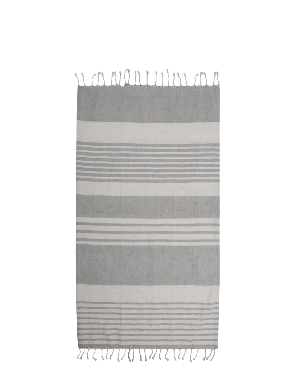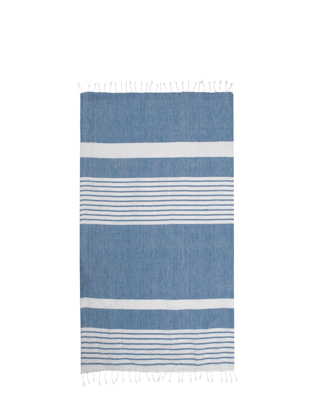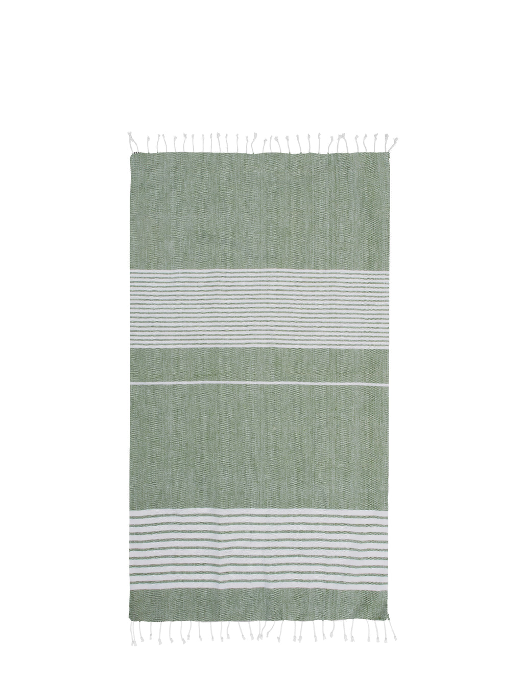 Ella hamam är en klassiskt mönstrad handduk med fransar i tunn, vävd återvunnen bomull (70%) och polyester (30%). Rändernas mönster är karakteristiska för Sagaform med olika mönsterbilder för olika färger. Finns i mjuka toner av blått, grönt, gult och grått. Torkar fort och är enkel att hänga upp. Smidig att rulla ihop och ha med sig till stranden, poolen eller i träningsväskan. Passar fint ihop med Eden hamam. Finns i storlekarna 50x70 cm, 90x170 cm och 140x250 cm. Paketerade i fin gördel av papp.