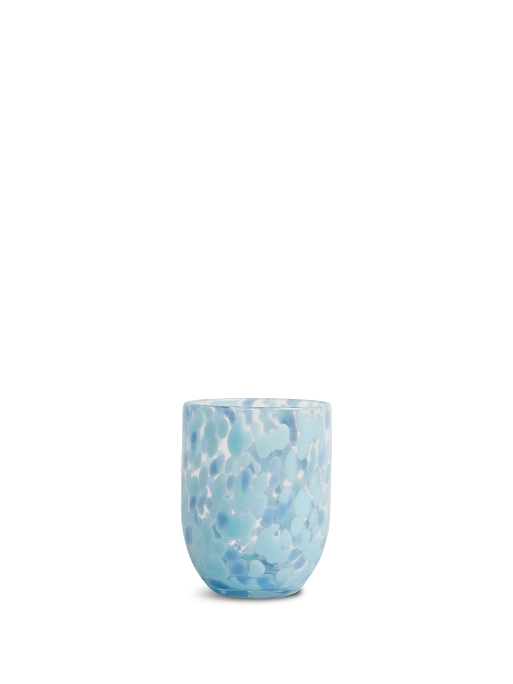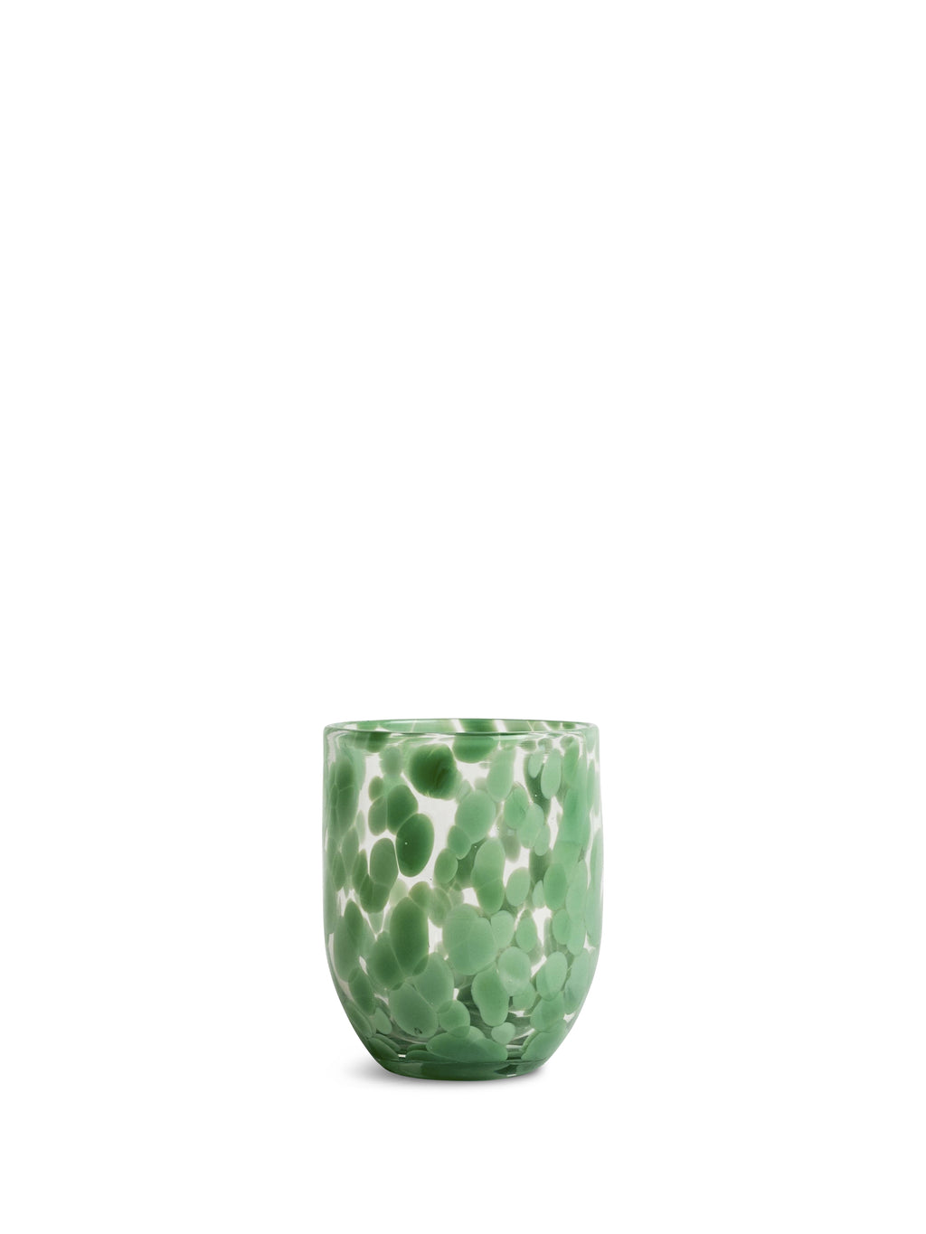 Som en smaskig karamell – god och oemotståndlig. Tillverkad i handblåst glas med ett lekfullt konfettimönster av mixade äppelgröna toner. Vi serverar drinkar, juice, mjölk eller kaffe. Med ett värmeljus blir det ett perfekt sken och även badrummet piggas upp med ett nytt tandborstglas.