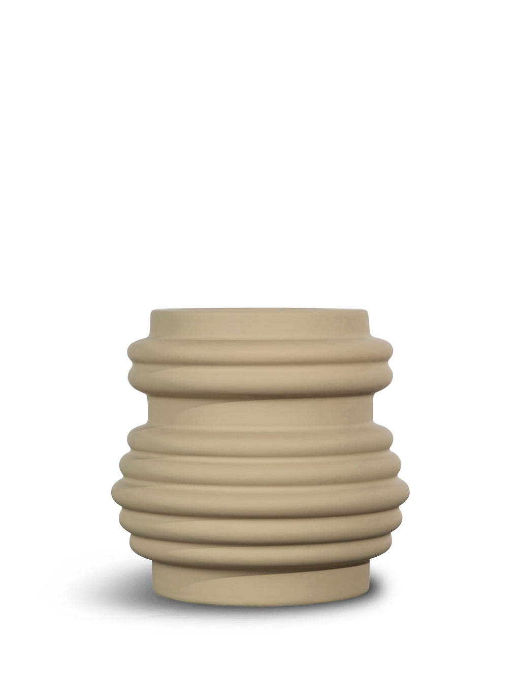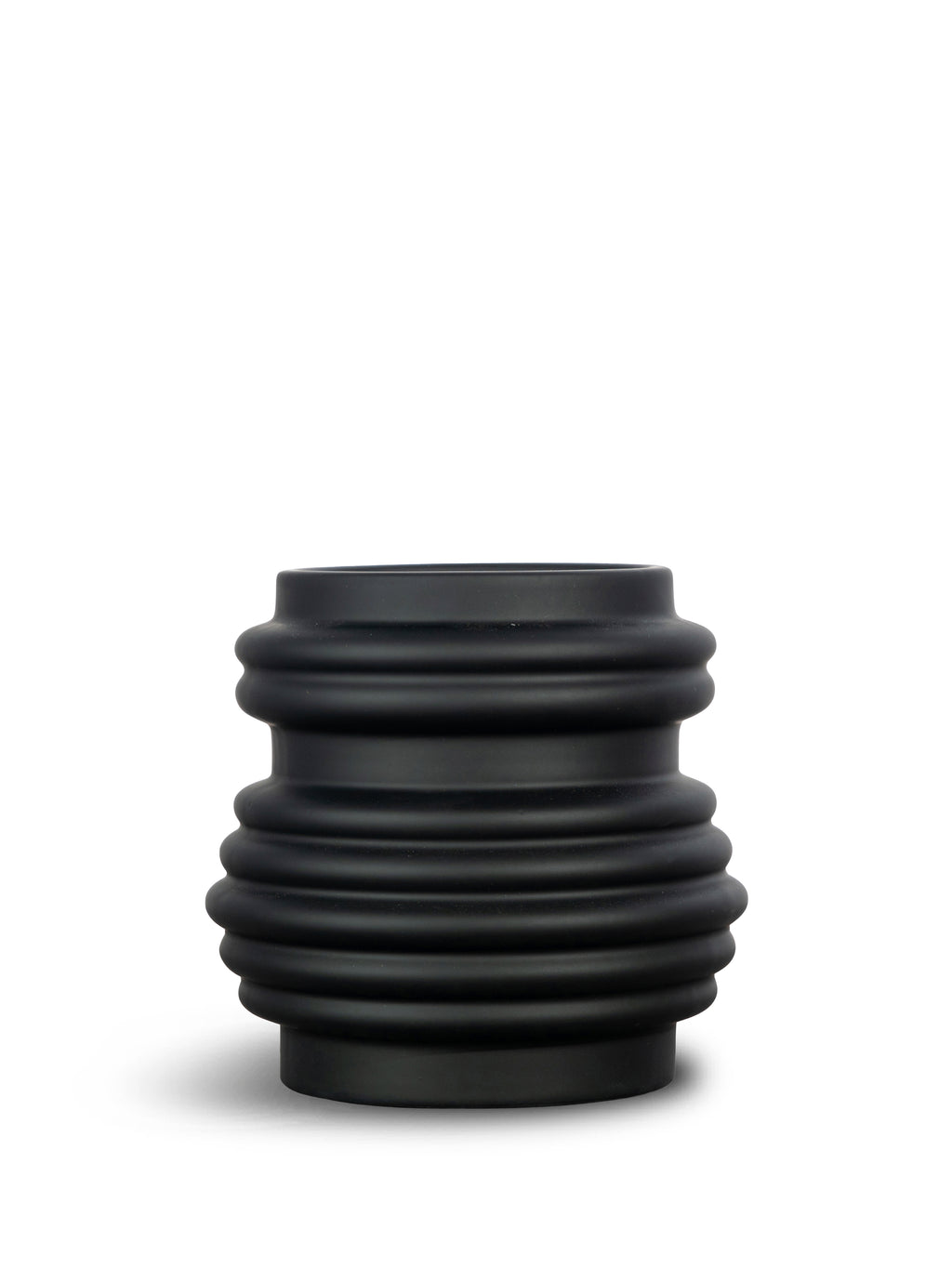 Skulpturell och tidlös svart kruka i stengods med gummerad yta som ger både ett fint intryck samt skön känsla att ta på.