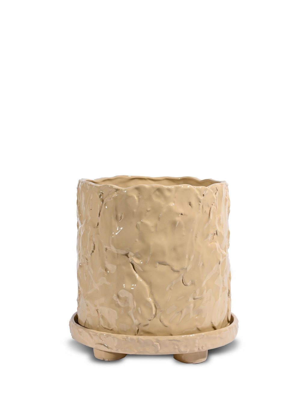 Muddy är en kruka med själ och stark personlighet, precis som Byon själv. Med inspiration från det operfekta och en aningen slarvig estetik skapas en tydlig lerstruktur under den blanka glasyren. Den råa ytan ger krukan ett ofullständigt intryck som, enligt Emma, bär på en unik karaktär och personlighet. Muddy är färgstark och uttrycksfull, vilket gör den till en imponerande detalj i hemmet. Krukan levereras med ett fat på fötter och har dräneringshål, något som gör den både praktisk och dekorativ. Finns i två storlekar och i flertalet färger. Handgjord och tillverkad i stengods. Färg- och strukturskillnader kan uppstå. Alla krukor är unika. Design Byon x Emma Widell. Levereras i Byon box.