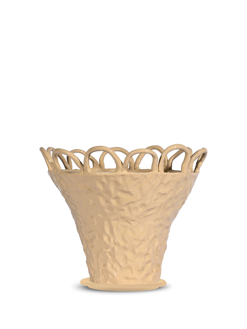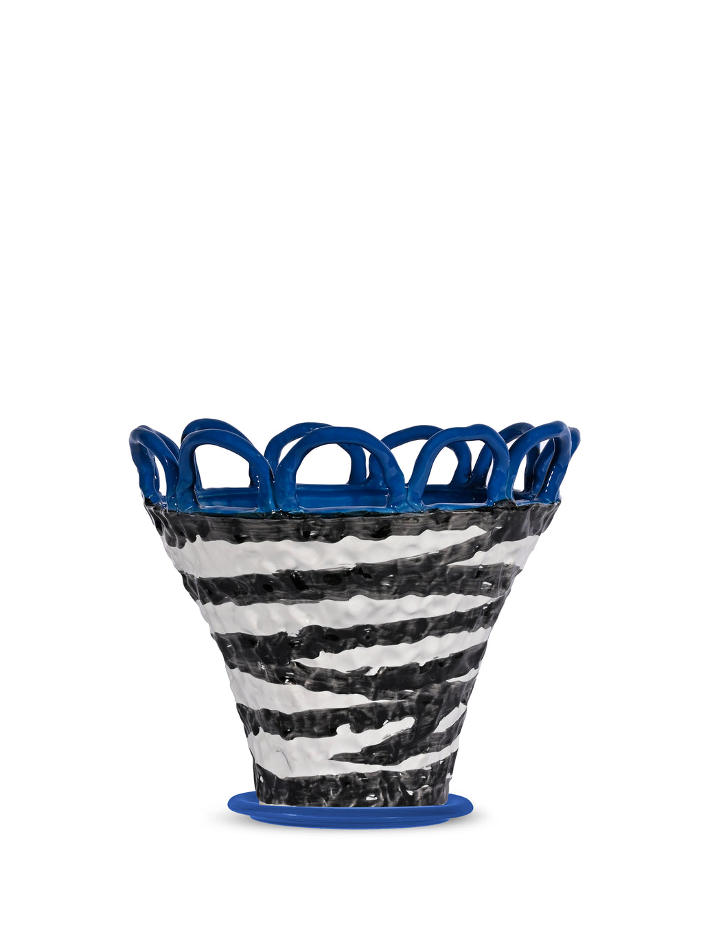 Patty är en djärv och lekfull kruka som personifierar Byons anda mer än något annat. När Emma skulle skapa en kollektion för Byon föll valet naturligt på hennes signatur – zebran och det randiga mönstret – för att göra ett starkt statement i hemmet. Zebramönster och poppiga glasyrer har länge varit en del av Emmas konstnärskap, och i Patty förenas de i en uttrycksfull kombination av två världar. Krukan levereras med ett fat och är utrustat med dräneringshål, vilket gör den både praktisk och dekorativ. Krukan är handgjord och tillverkad i stengods och finns i fler färgställningar och storlekar. Handgjord. Färg- och strukturskillnader kan uppstå. Alla krukor är unika. Design Byon x Emma Widell. Levereras i Byon box.