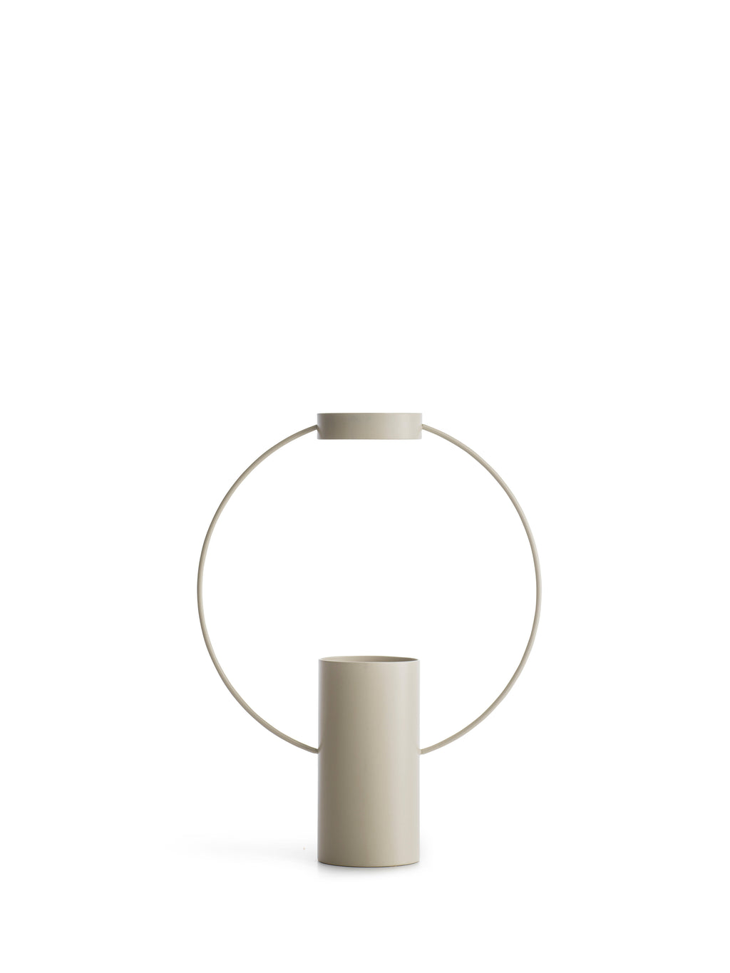 Elegant, modern och stilren vas i pulverlackad metall. Designad av Pascal Charmolu. Vasen fungerar lika bra som en snygg inredningsdetalj som en praktisk vas där toppdelen håller snittblomman på plats. Vasen finns i två färger och två storlekar.