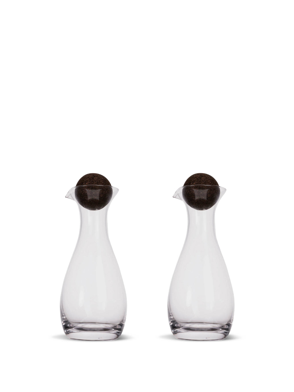 Små glasflaskor med mörk korkkula – en älskvärd och klassisk kombination som aldrig går ur tiden. Vi älskar kork som är det mest hållbara av alla organiska material. Dessutom helt ogenomtränglig för vätska. Använd flaskorna till olja och vinäger, som mjölkkanna, en liten vinkaraff eller till den hemmagjorda dressingen. Säljs i 2-pack.