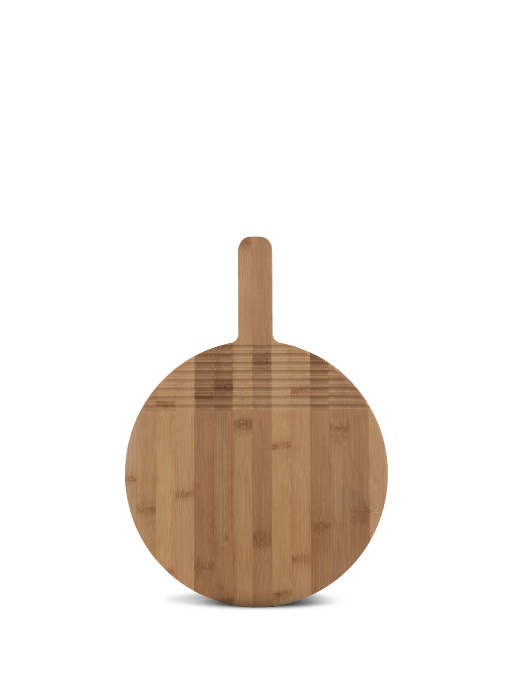 Skippa plasten och gör ett hållbart val med en skärbräda i bambu. Bambu är en snabbväxande och förnybar resurs med många fördelar. Materialet är starkt och naturligt antibakteriellt. Dessutom kräver odlingen lite vatten och sker utan bekämpningsmedel och konstgödsel. Denna runda skärbräda i bambu är formgiven av Anton Björsing. Brädan har ett gediget handtag för servering och skåror som är en kombination snygg detalj och praktisk funktion, då de ser till att verktyg inte glider av lika enkelt.