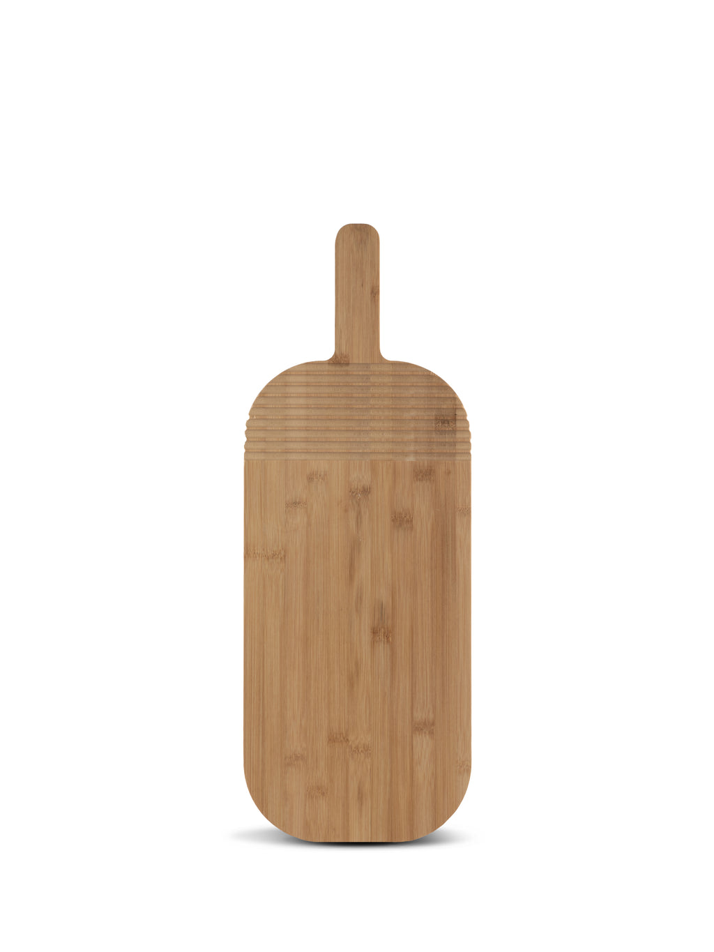 Skippa plasten och gör ett hållbart val med en skärbräda i bambu. Bambu är en snabbväxande och förnybar resurs med många fördelar. Materialet är starkt och naturligt antibakteriellt. Dessutom kräver odlingen lite vatten och sker utan bekämpningsmedel och konstgödsel. Denna generösa ovala skärbräda är formgiven av Anton Björsing. Brädan har ett gediget handtag för servering och skåror som är en kombination av snygg detalj och praktisk funktion, då de ser till att verktyg inte glider av lika enkelt.