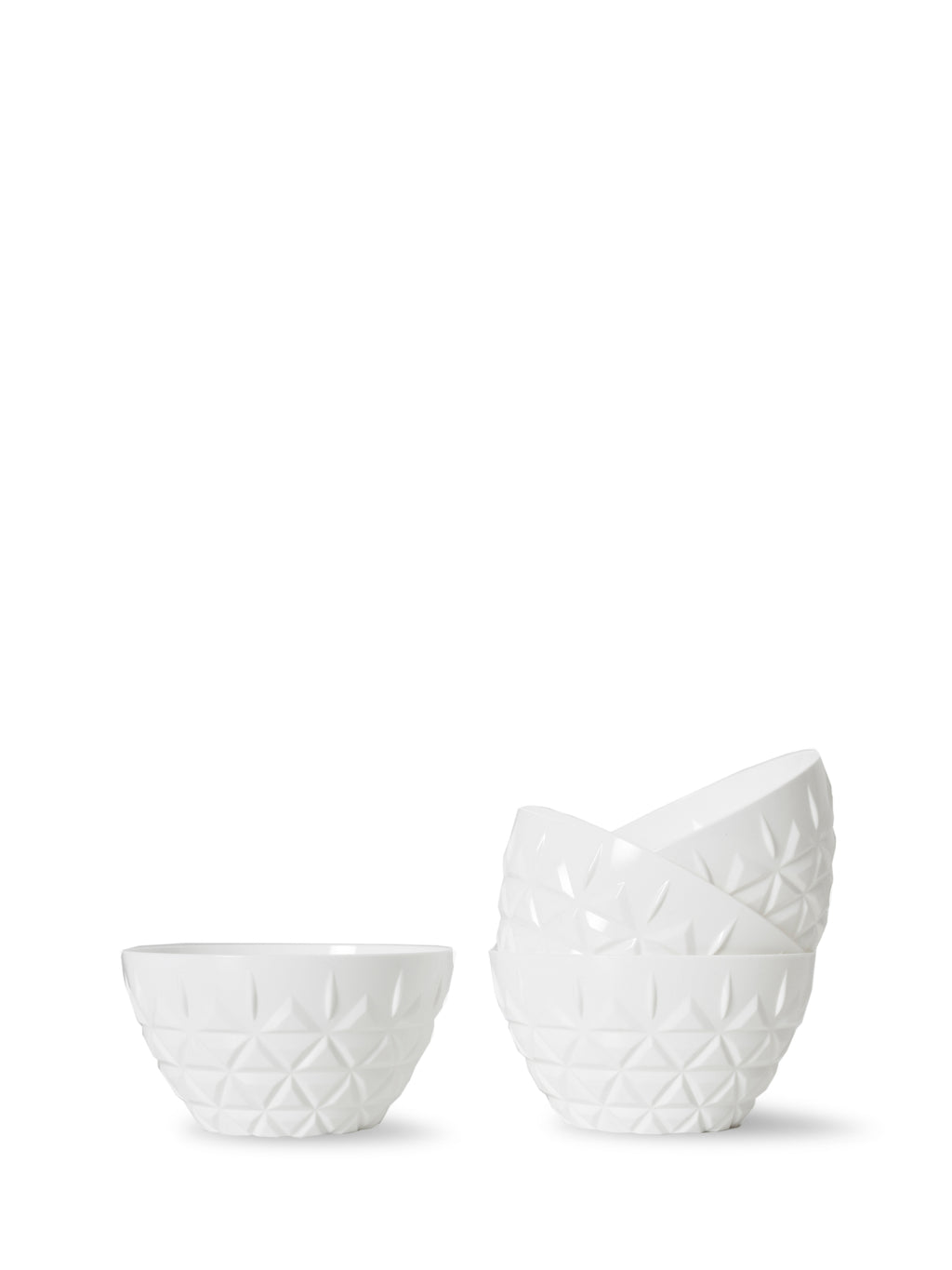 En favoritskål i akrylplast, i en lyxig och krispig äggskalsvit färg med stilrent kristallmönster. Skålen är både funktionell och vacker på samma gång. Perfekt för stranden, i skogen, båten och uterummet. Finns även i klar plast. Levereras i 4-pack.