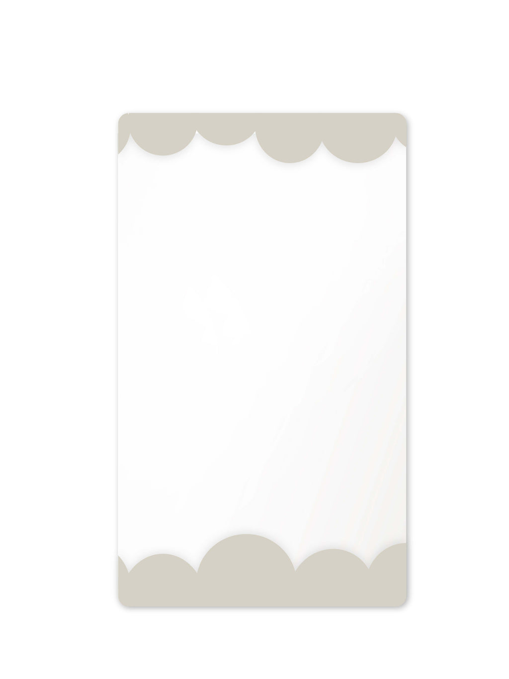 De mjuka rundade formerna är ritade för hand och skapar lekfulla halvcirklar som får oss att tänka på luftiga moln. Ramen har en annorlunda design där den inte sitter på klassiskt vis med fyra sidor, utan endast på två av sidorna. Ramen är spraylackerad mdf och har två olika upphängningar (horisontellt och vertikalt) för att kunna variera sättet att ha den på. En spegel vi absolut vill se i många hem för att förgylla ett rum. Finns i beige och bordeaux. Storlek 70x100 cm. Design Byon Studio.