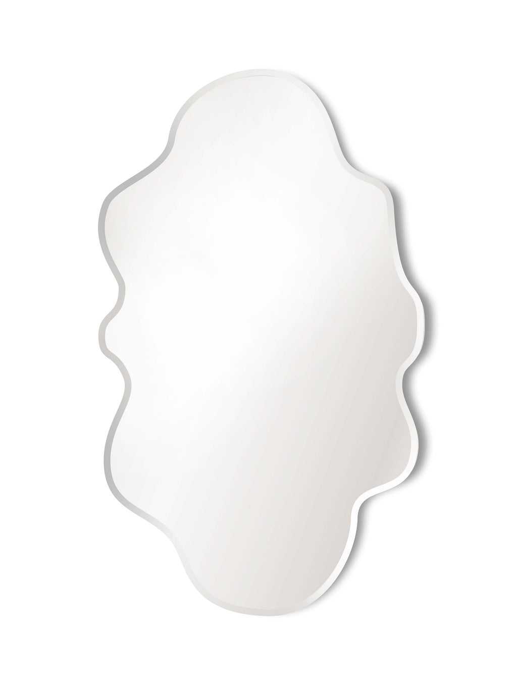 En fantasifull spegel med organiska former som leker med beskådaren på ett förförande sätt. Lika fin liggande som stående, ensam som i par. Spegelglas med fasade kanter. Finns i två storlekar.