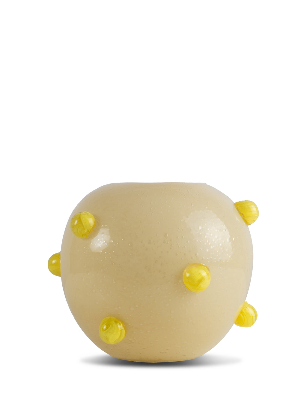 Vasen Arlo är pompös och extra allt, precis så som Byon vill vara. Med sin runda, tunga kropp prydd av glasbollar tar den sin självklara plats vart den än står. En vas som lyckas vara både ikonisk och lekfull på samma gång. Den beige basen mixad med citrongult skapar en oslagbar kombination. Handgjord. Färg- och strukturskillnader kan uppstå. Design Byon Studio. Levereras i Byon box.